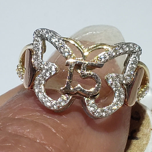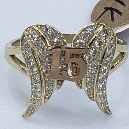 14k Gold butterfly 15 years Quinceanera Ring Size 6 7 8 9