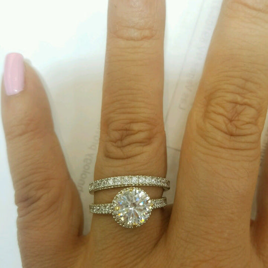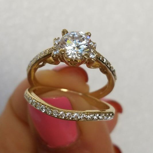 1.5 C 10k yellow Gold 2 piece halo round Engagement Wedding Ring Set s 7.5