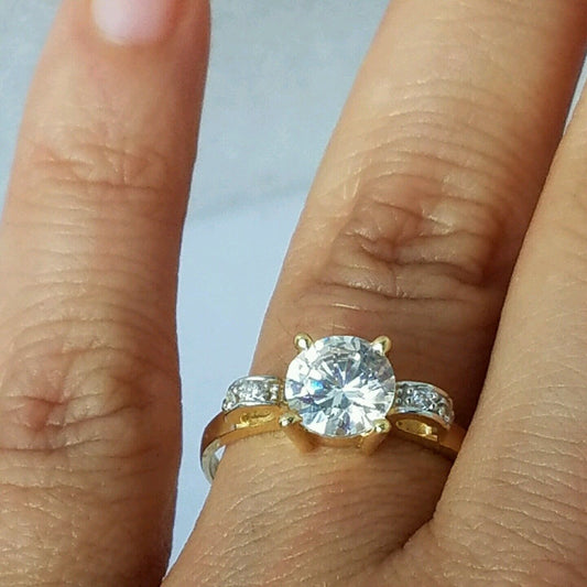 1.32 C 14k Real Yellow Gold Round CZ Engagement Wedding Ring S 8.5