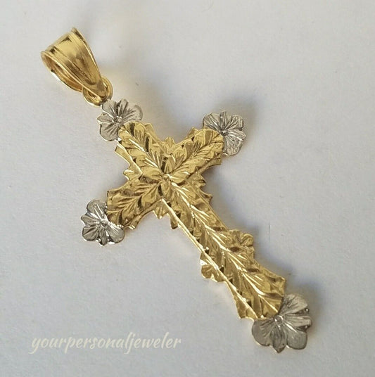 1.35 inch long 2 tone 10k yellow white Gold Cross Pendant charm
