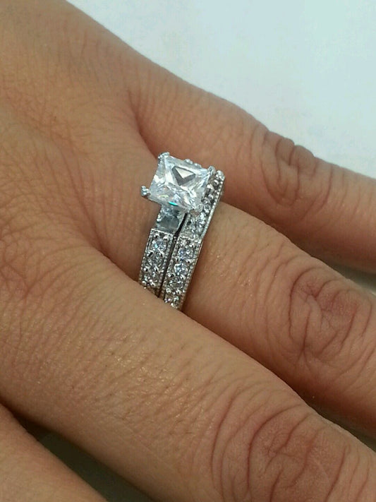1.2 Carat 10K White Gold princess cut square Engagement Wedding Band Ring Set S8