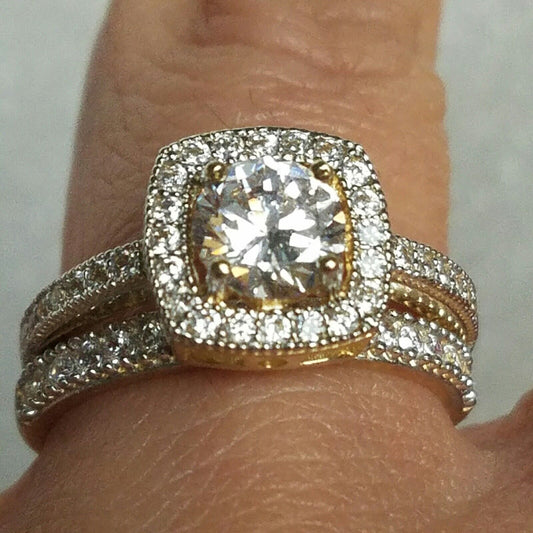 1.63 CT Round Cut Double Halo 14k Yellow Gold Engagement Ring S 6.5 Cz