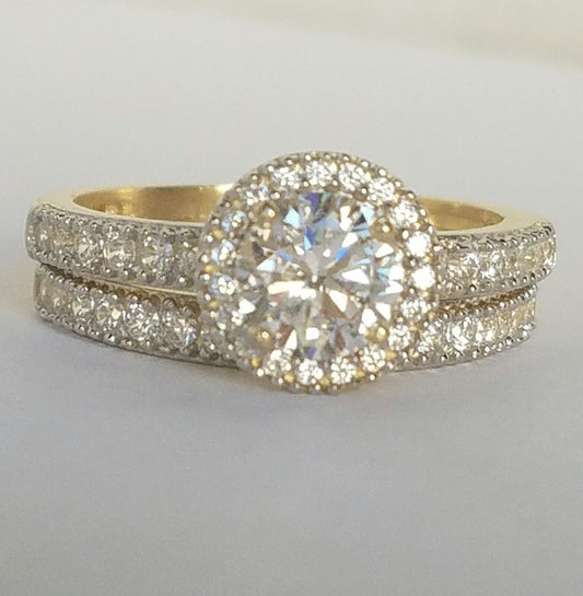 1.7 C 14k yellow Gold 2 piece halo round Engagement Wedding Ring band Set s 7