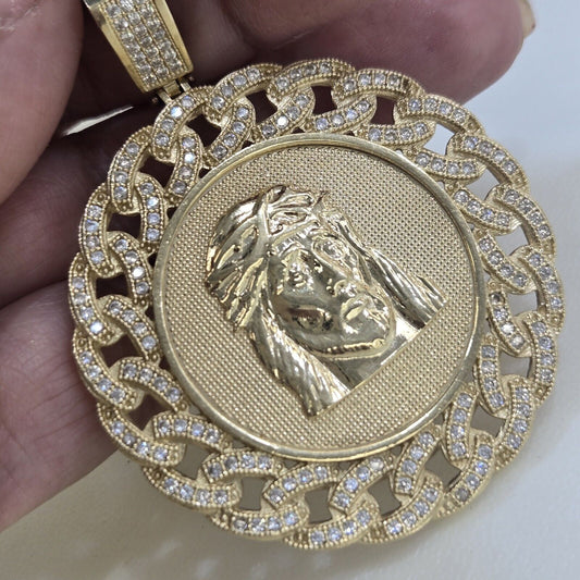 Big solid 14k Gold round Jesus Pendant Charm