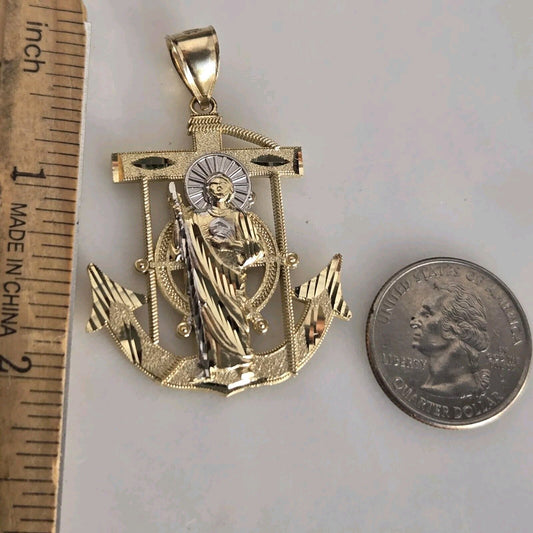 Big solid 14k Gold Saint Jude Anchor Pendant charm 2 inches long