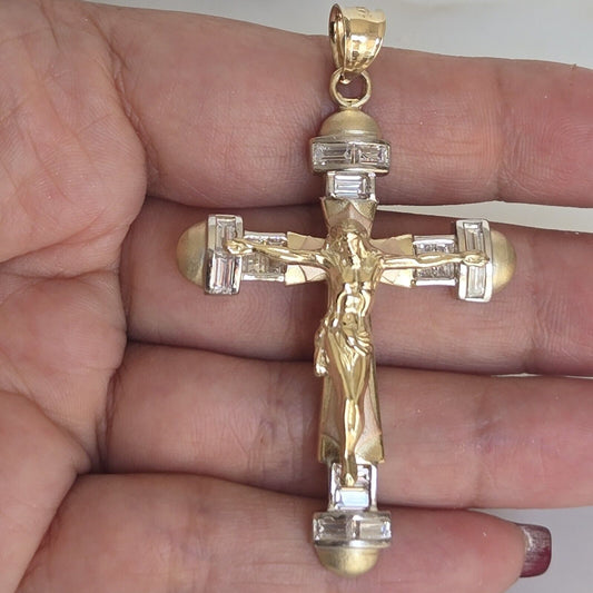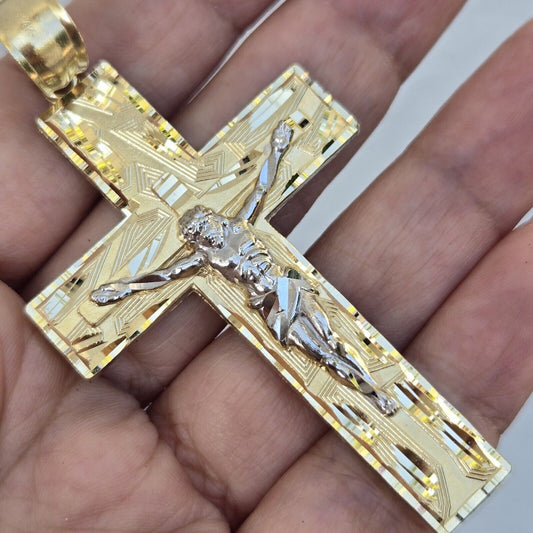 Big Solid 14k yellow Gold Jesus Crucifix Cross Pendant 3 inches long