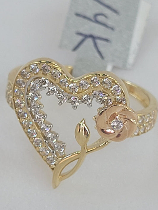 Big Solid 14k rose yellow Gold flower Heart ring size 6789 10