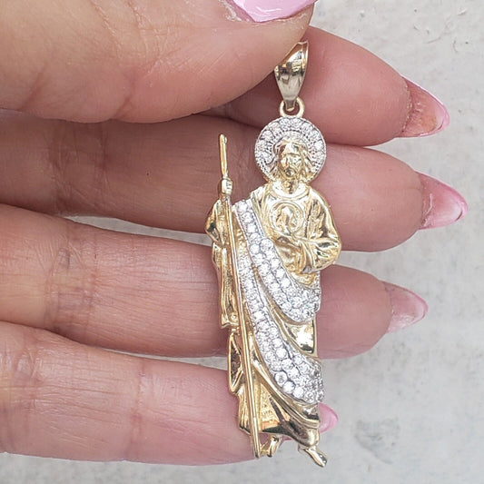 Big Solid 14k Gold Saint Jude Judas Pendant charm 2.2 inch long