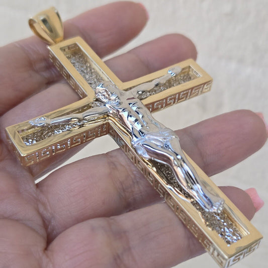 Big Solid 14k Gold Jesus Crucifix Cross Pendant 4 Inches Long Greek Key