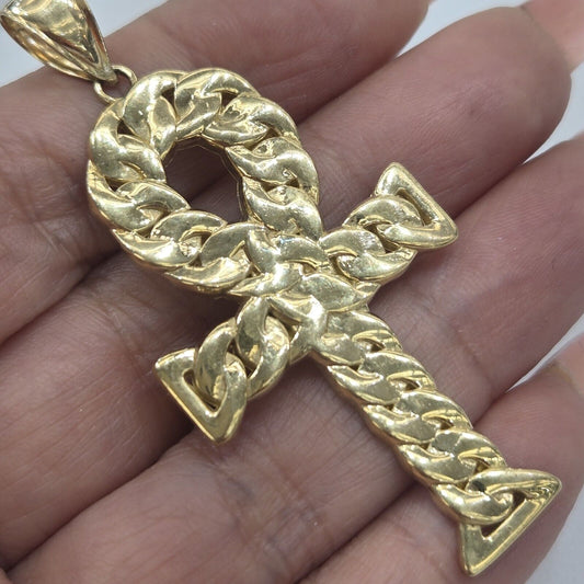Big Solid 14k yellow Gold Egyptian Cross ankh Pendant 2.45 inches long