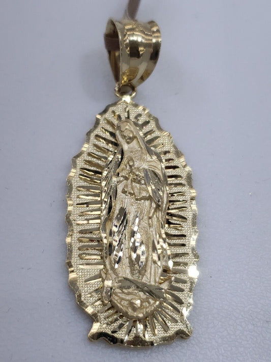 Big solid 14k gold virgin Mary Holy mother oval pendant charm 1.75 inch long