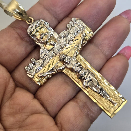 Big Solid 14k Gold Jesus Crucifix last supper Cross Pendant 3 Inches Long