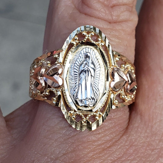 Big solid 14k gold virgin Mary guadalupe Ring Size 6 7 8 9 10 11