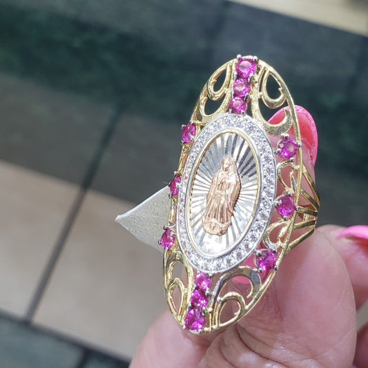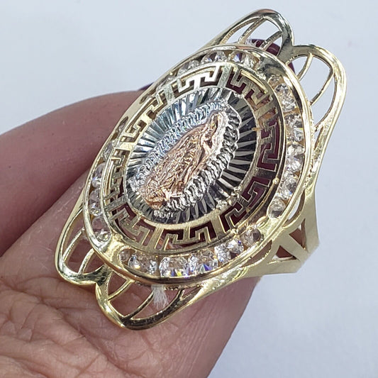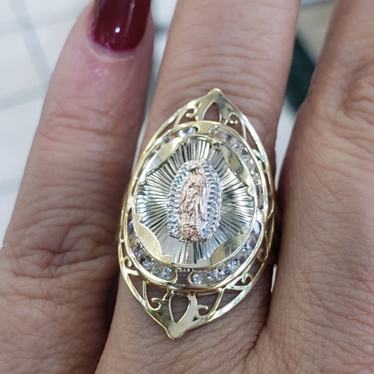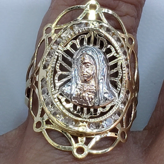 Big wide solid 14k Gold virgin Mary guadalupe Ring Size 6 7 89 10 oval