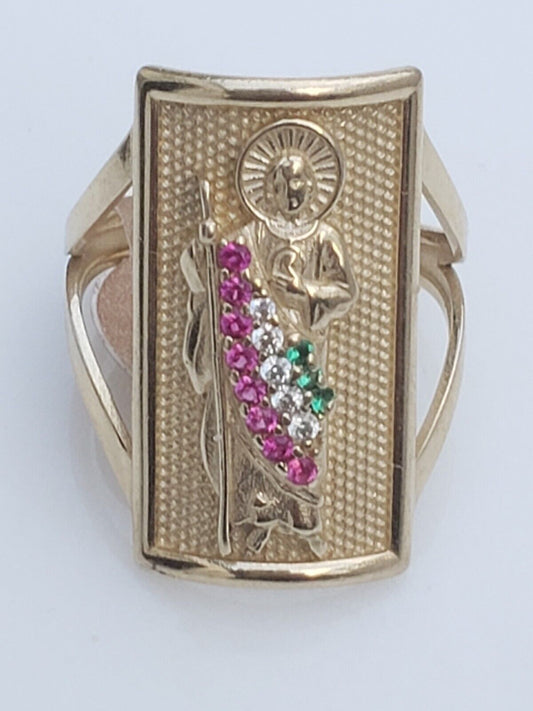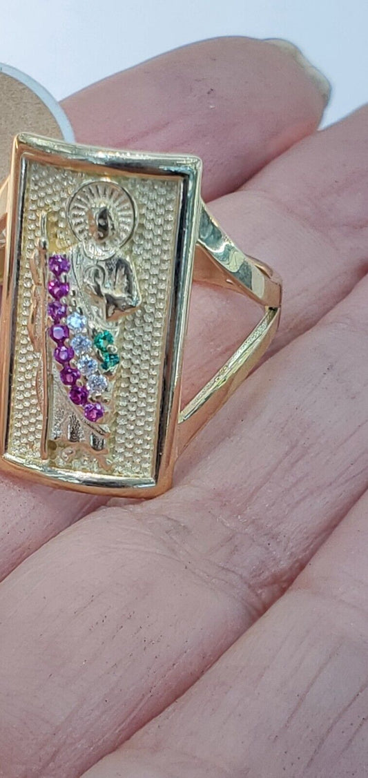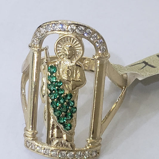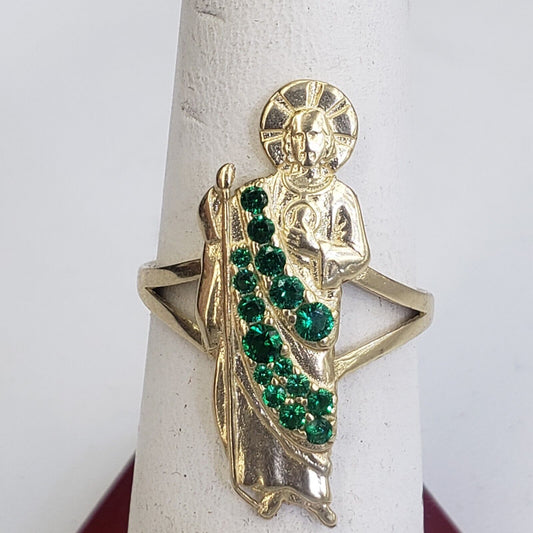 Big wide solid 14k yellow Gold Saint Jude Judas Ring Size 6 7 89 10 Green