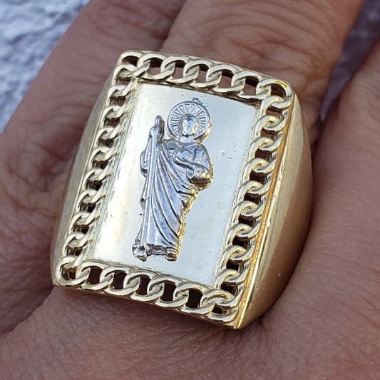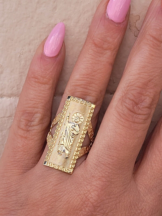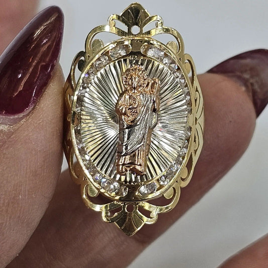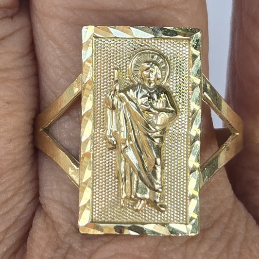 Big wide solid 14k Gold Saint Jude Judas Ring Size 6 7 8 9 10 oval