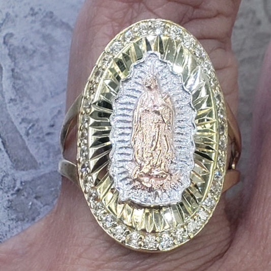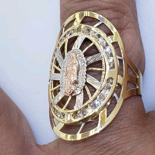 Big wide solid 14k Gold virgin Mary guadalupe Ring Size 6 7 8 9 10 oval