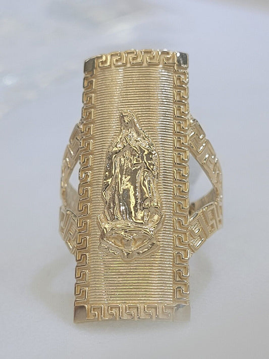 Big wide solid 14k yellow Gold Virgin Mary Guadalupe Ring Size 6 7 8 9 10 Greek