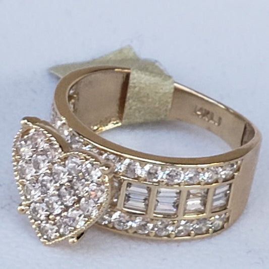 big wide real 14k Yellow Gold round baguett Heart Engagement Ring