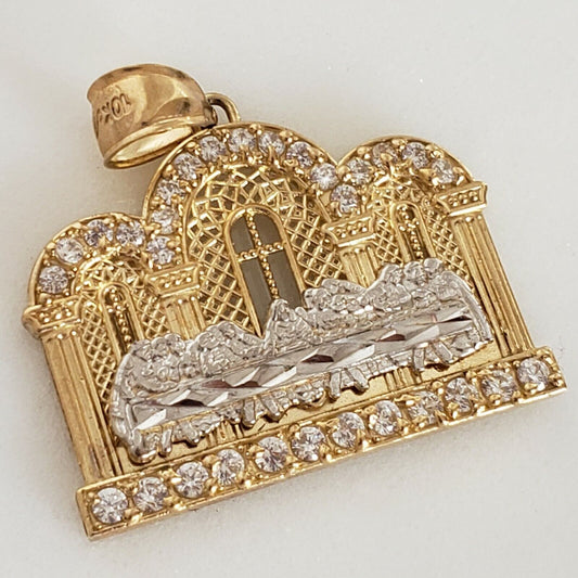 Diamond cut 10k yellow white Gold last supper Pendant charm 1.15 inch 2 tone