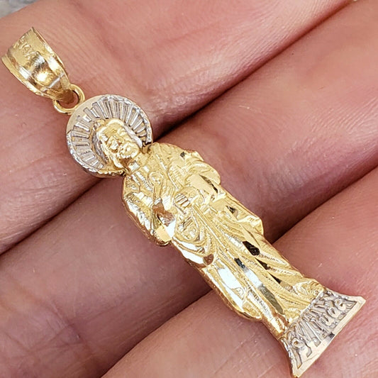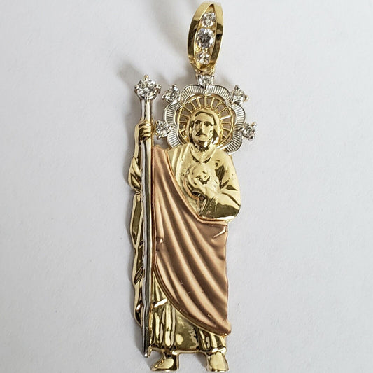 Diamond cut 14k Yellow white Gold Saint Jude juda Pendant charm 1.35 inch Long