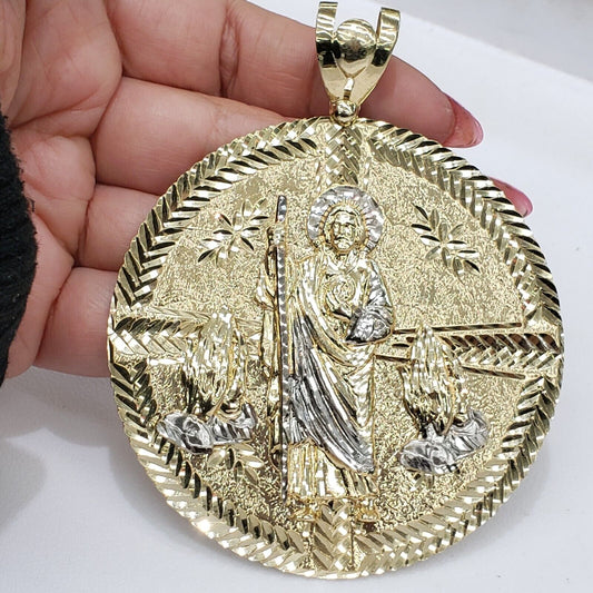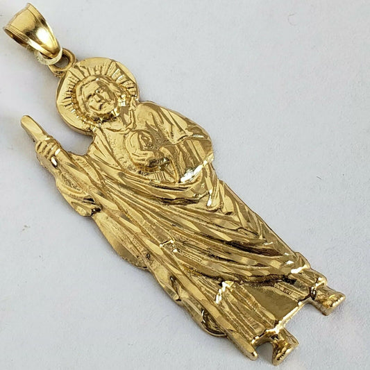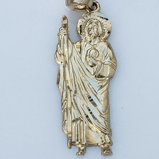 Diamond cut 10k Yellow Gold Saint Jude juda Pendant charm 1.75 inch Long