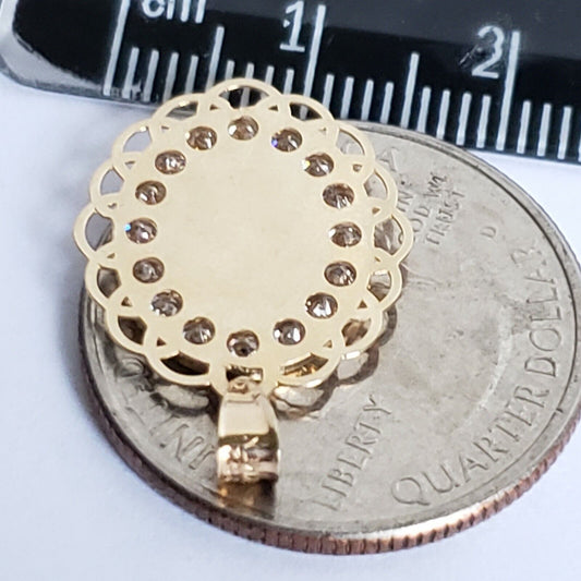 Diamond cut 14k gold virgin Mary Holy mother pendant charm 0.85 inch long