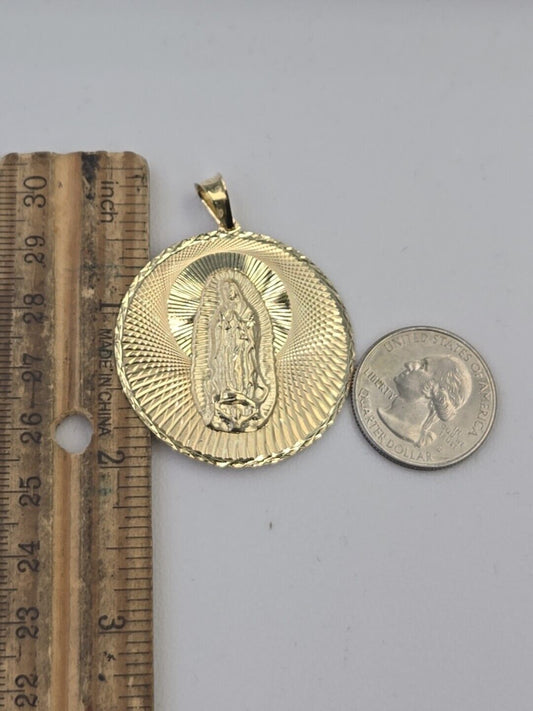 diamond cut big 14k yellow gold virgin Mary guadalupe pendant charm 2 Inch Long