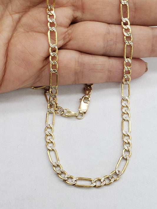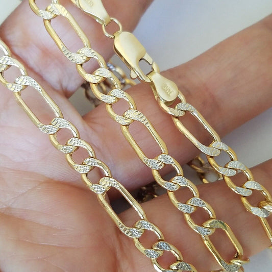 Diamond cut 14k yellow gold 5 mm Figaro chain necklace 22 inches long