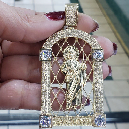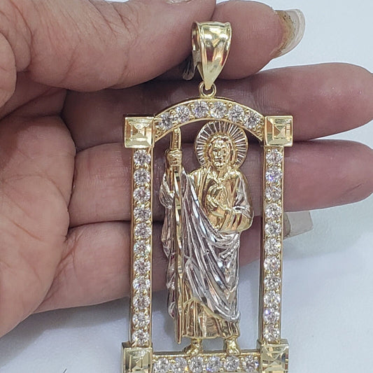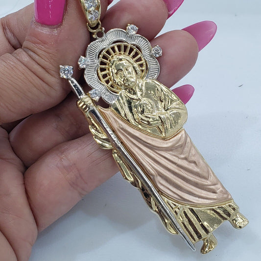 Large Big 14k Gold Saint Judas jude Pendant charm 3 inches long 2 tone