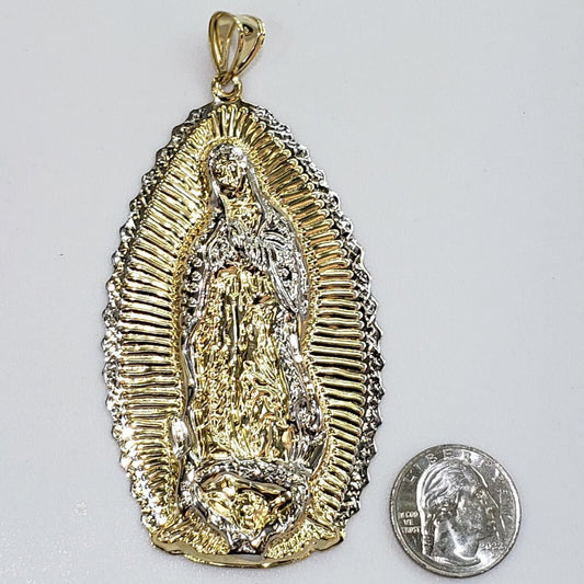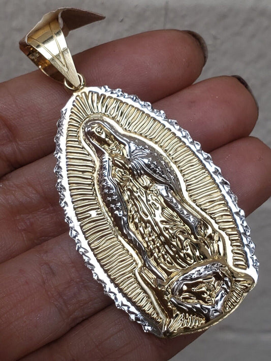 Large Big 14k Gold virgin Mary guadalupe Pendant charm 2.50 inches long diamond