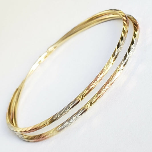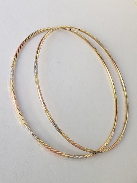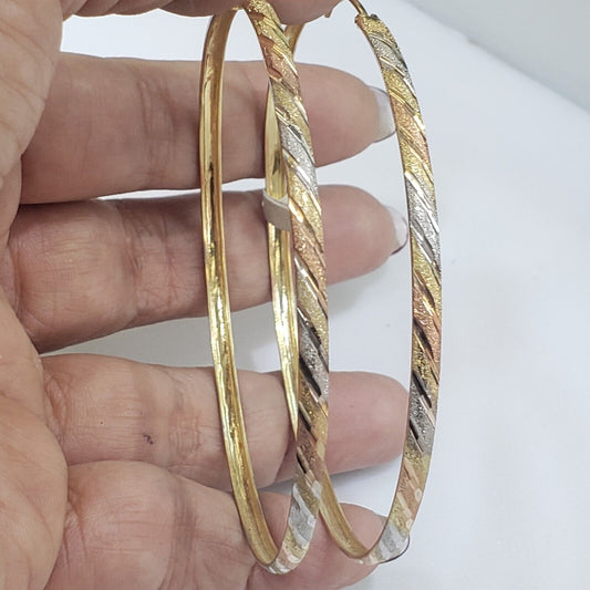 Large Big 14k yellow white rose gold hoop earrings 2.75" long 3 tone 70mm