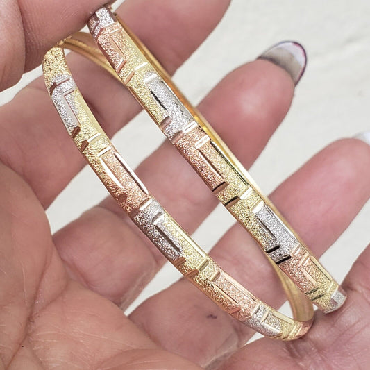 Large Big 14k yellow white rose gold hoop earrings 2.50" long 3 tone 63 mm greek