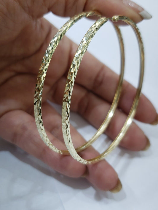 large Big 14k yellow white rose gold hoop earrings 2.5 inches long 60 mm