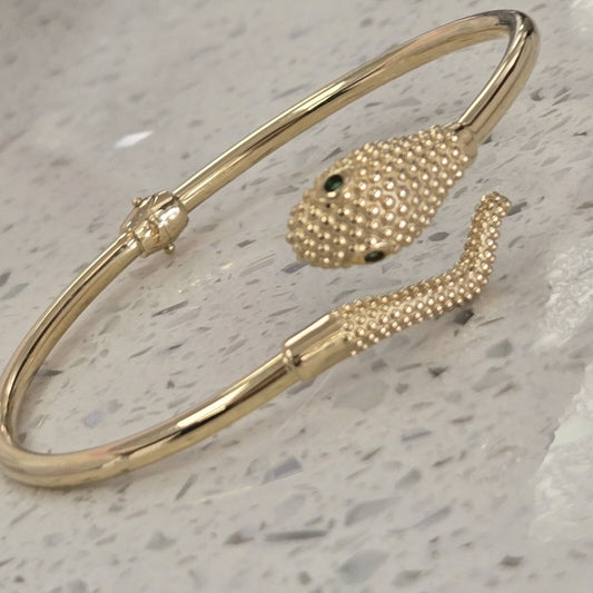 Real 14k Yellow GOLD Snake bracelet Bangle 2.50 inches