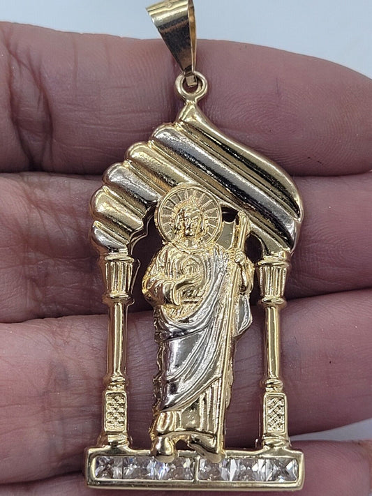 Real 14k yellow Gold Saint Jude judas Pendant charm 1.5 inch