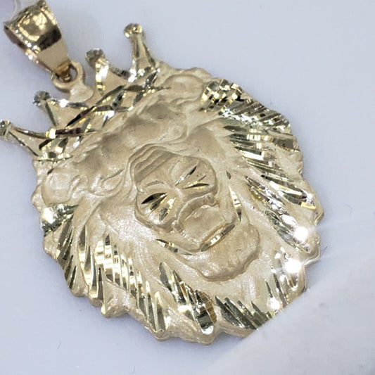 Real 14k Yellow Gold lion king Pendant charm 1.65 inch long diamond cut Leo