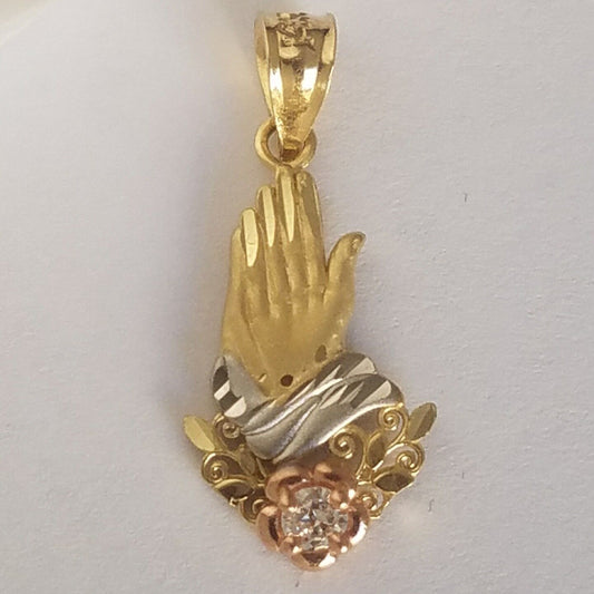 Real 14k yellow gold praying hands pendant charm 1 inch long