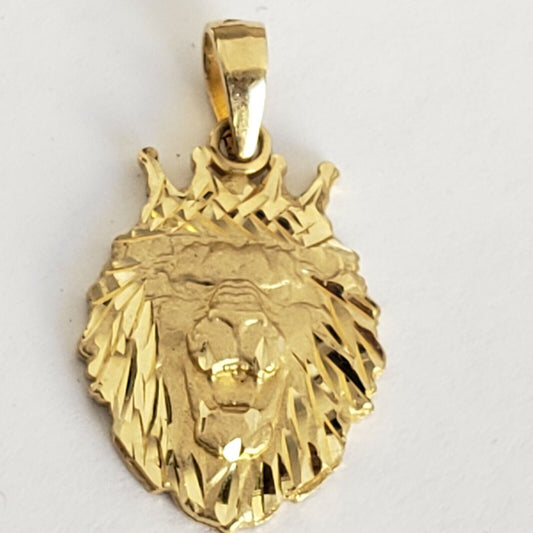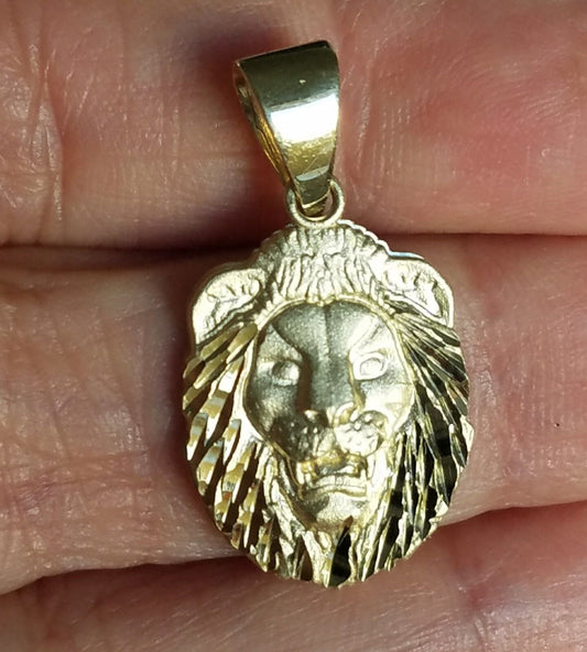 Real 14k Yellow Gold lion Pendant charm 1 inch long diamond cut Leo