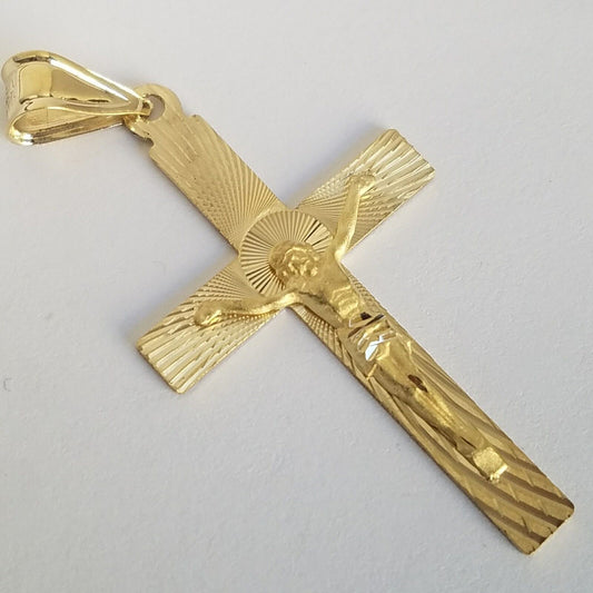 Real 14k yellow Gold diamond cut Jesus Crucifix Cross Pendant charm 1.85 inch
