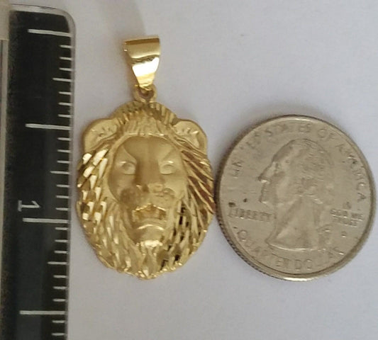 Real 14k Yellow Gold lion Pendant charm 1.25 inch long