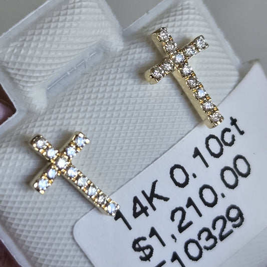 Real 14k yellow gold Natural Diamonds Small Cross earrings