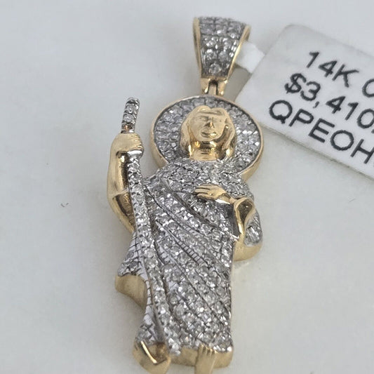 Real 14k Yellow Gold Diamond saint jude Pendant Charm 2 Inches Long .49 carat