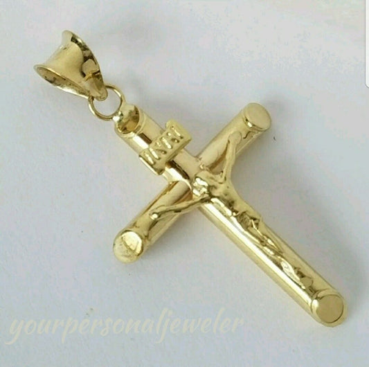 Real 14k Yellow Gold INRI Jesus Christ Crucifix Cross Pendant 1.20 inches long