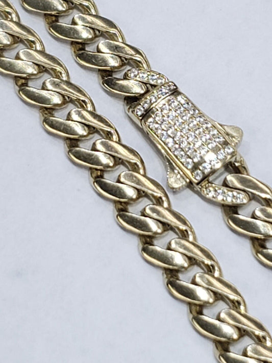 Real 14k Yellow Gold miami cuban Bracelet 8 mm 8.25 box lock Stones