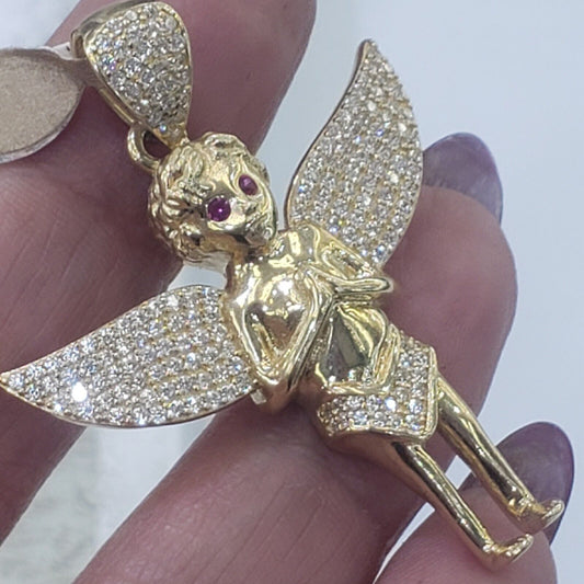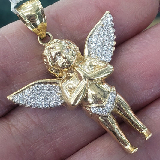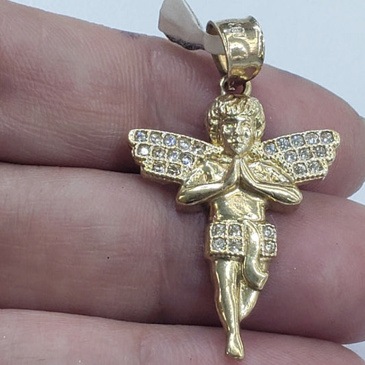 Real 10k Gold Angel Pendant Charm 1 inch long