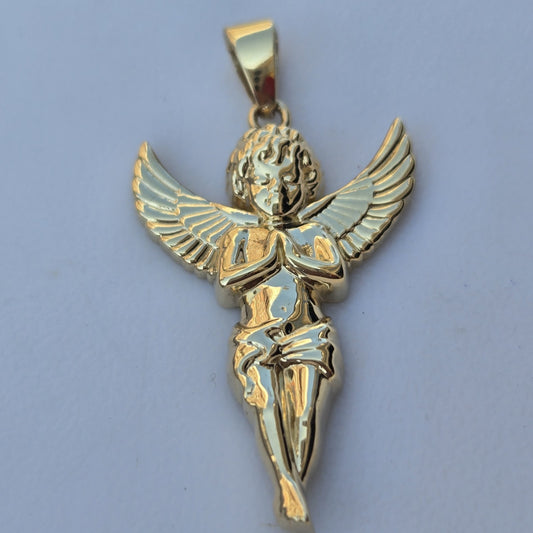 10k Yellow Gold praying angel Pendant charm 1.45 inch long