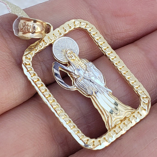 14k Gold santa muerte grim reaper angel of death pendant rectangular 1.25"