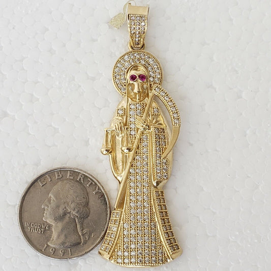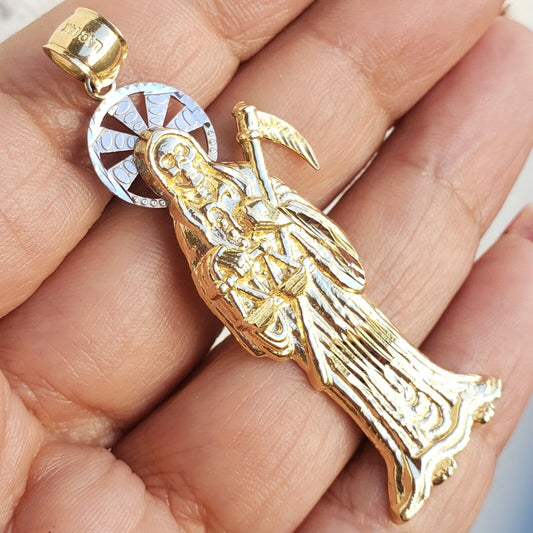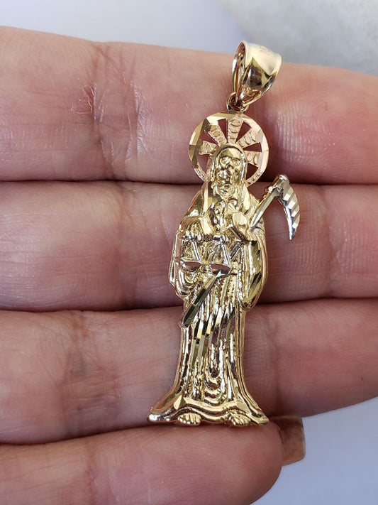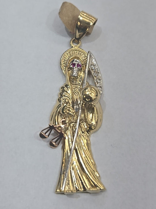 Big real 14k yellow Gold santa muerte grim reaper pendant angel of death 2.75"