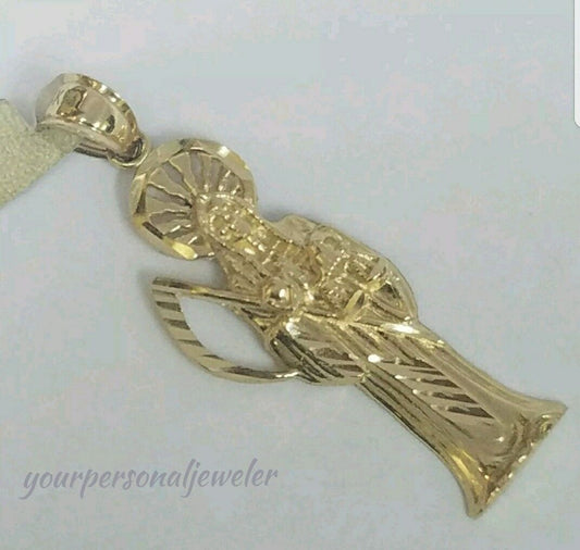 1.25 inch 14k solid yellow Gold grim reaper Santa Muerte pendant Angel of Death